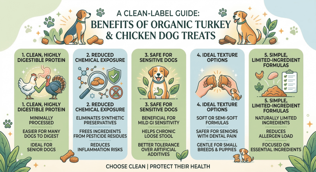Quick Answer Limited-ingredient organic dog treats offer cleaner, simpler nutrition for dogs with food sensitivities, digestive issues, or skin irritation. By minimizing the number of ingredients and avoiding synthetic additives, these treats reduce the overall allergen load while supporting more predictable digestion. Organic turkey, organic chicken, and plant-based formulas remain top choices for sensitive dogs…