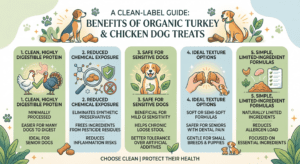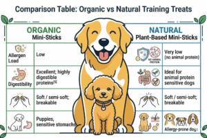 Summary Organic vs natural dog treats come down to certification, ingredient sourcing, and your dog’s specific needs. Organic dog treats follow USDA-certified standards that prohibit synthetic pesticides, artificial preservatives, and chemically processed ingredients, making them ideal for sensitive dogs and health-conscious buyers. Natural dog treats are made without artificial additives, but are not required to…